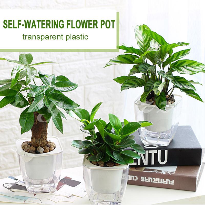 Cr Flowerpot Garden Pot Transparent Plastic Self Watering